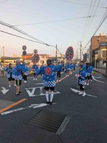 おはら節に合わせて約1.8kmを、熱中症や体調不良での脱落者も出ず、全員が踊り切りました。